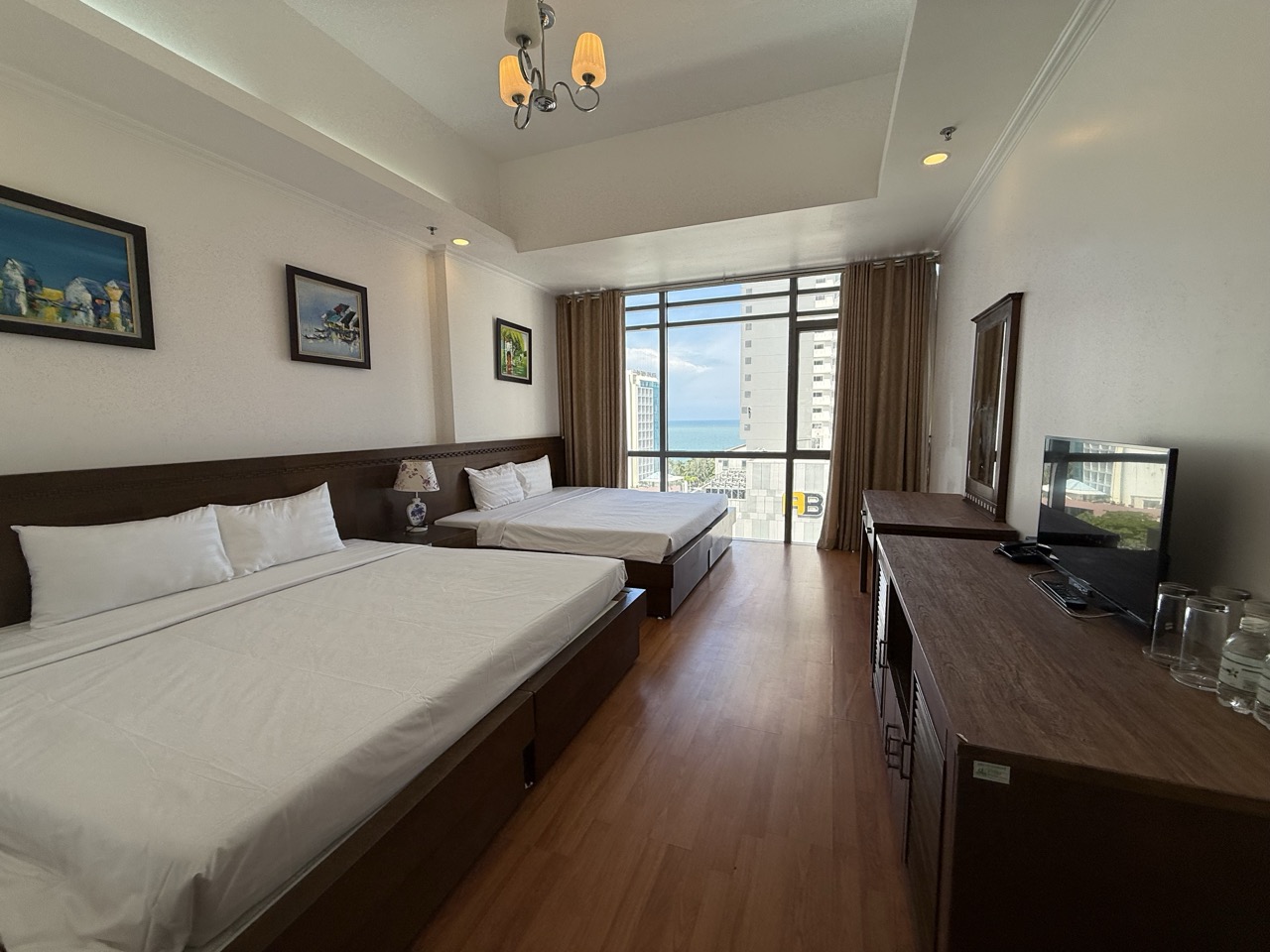 Сами номера приятно удивляют: просторные, светлые, с большими окнами, а в некоторых даже открывается шикарный вид на море. Уборка на уровне, без сюрпризов. Интерьер простой, но современный и свежий — ощущается комфорт.