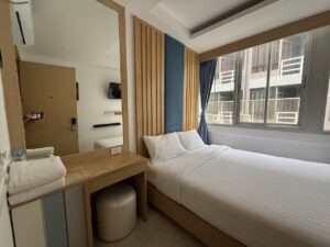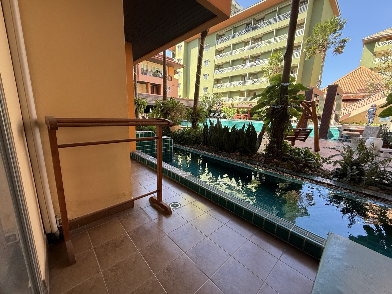 Mind Resort Pattaya — приятный и тихий отель с небольшой, но уютной территорией, который подойдёт для спокойного отдыха без городской суеты. Здесь чистый ухоженный бассейн, а в некоторых номерах на первом этаже есть прямой выход к воде — отличный вариант для тех, кто любит начинать день с купания.