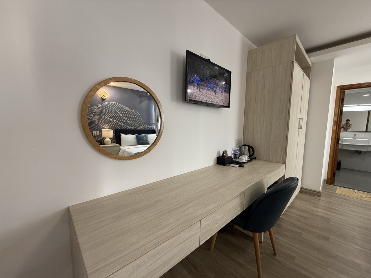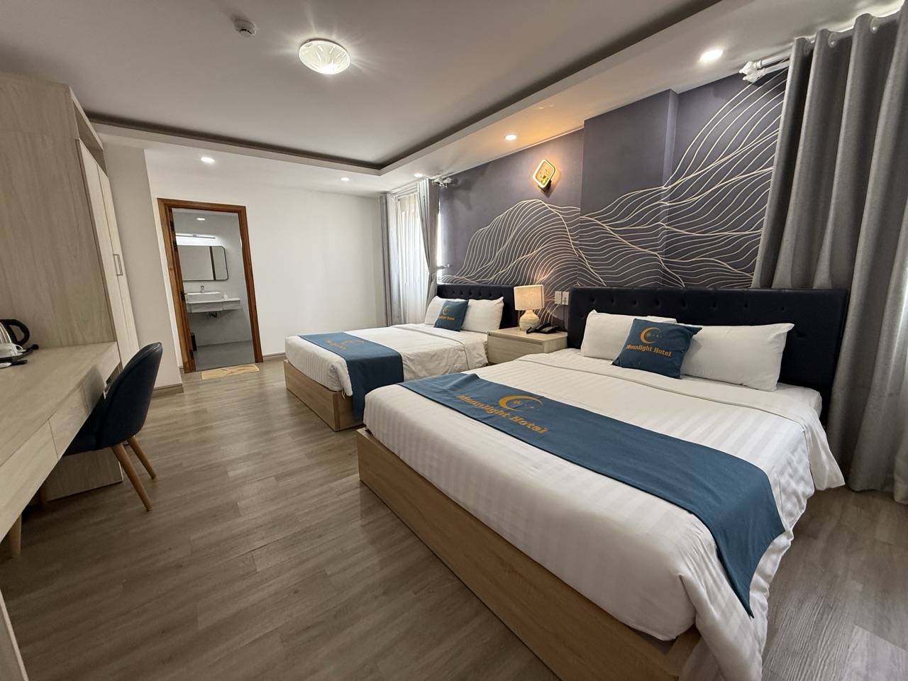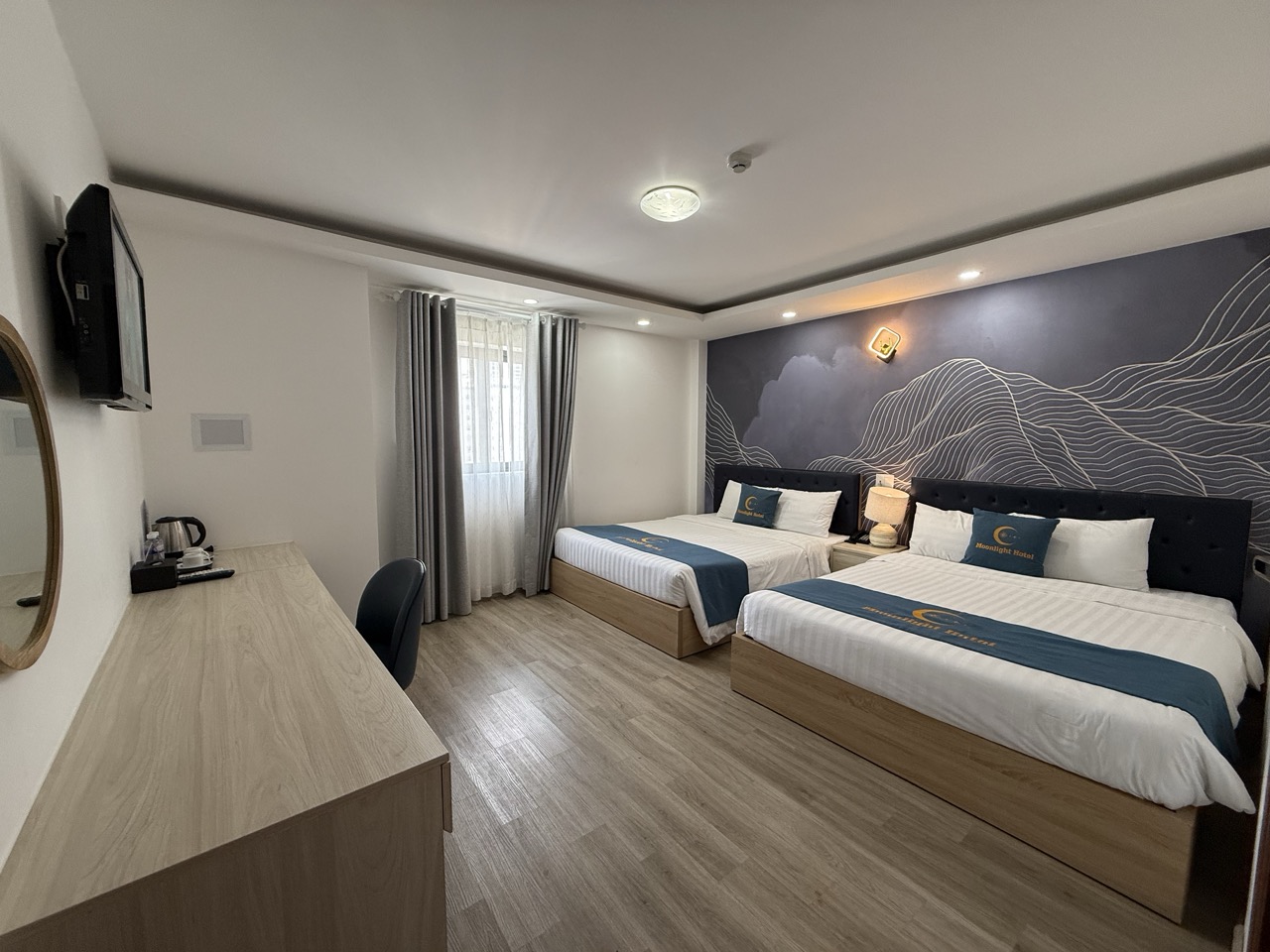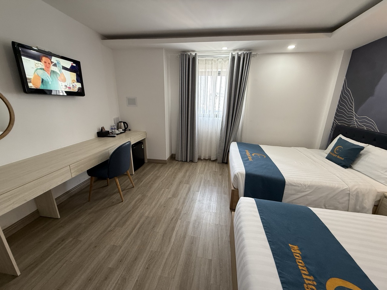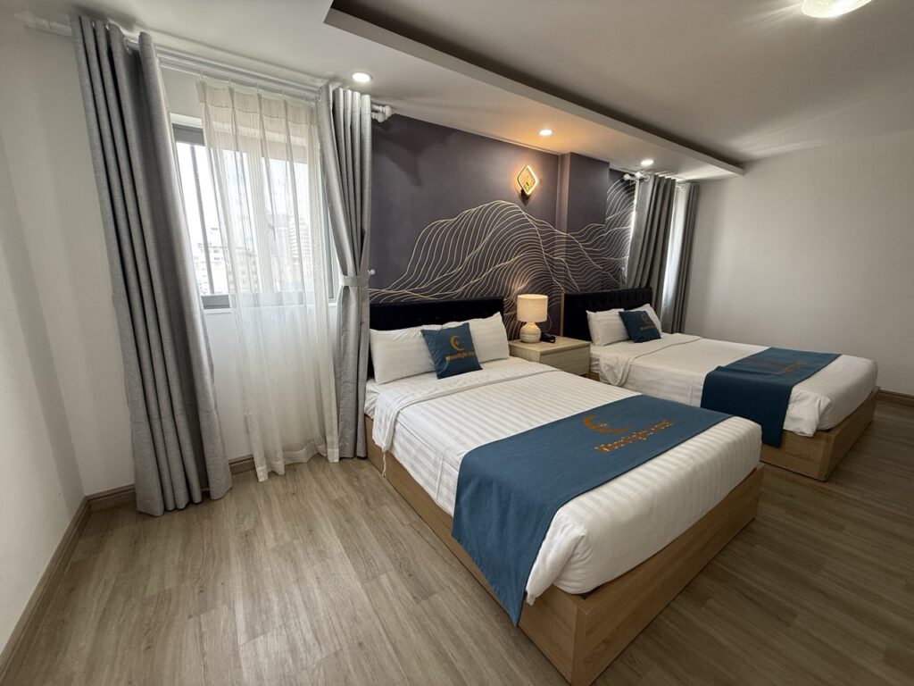 Moonlight Nha Trang Hotel — отель, который после ремонта открылся совсем недавно. Во всех номерах, которые мы посмотрели, сделан свежий ремонт: чисто, аккуратно и приятно находиться. Мебель и интерьер выглядят хорошо, кровати комфортные, постельное бельё свежее и чистое, интернет работает без проблем.