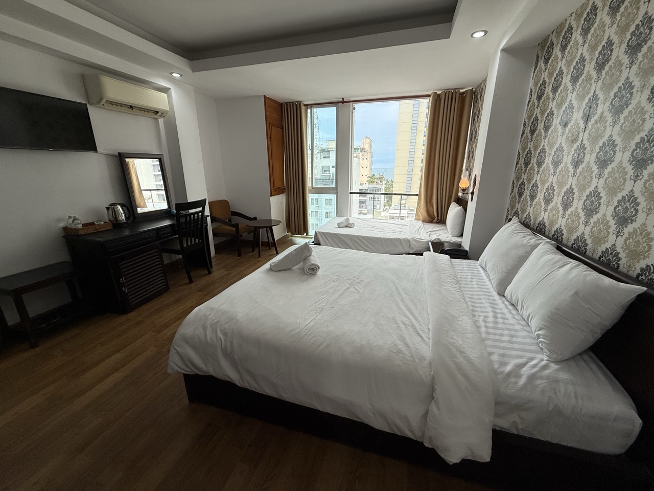 Из плюсов — отличное расположение. Буквально в паре шагов море, рядом Vincom Plaza, магазины, кафе. Всё под рукой, так что вопрос «куда пойти вечером» тут не стоит.