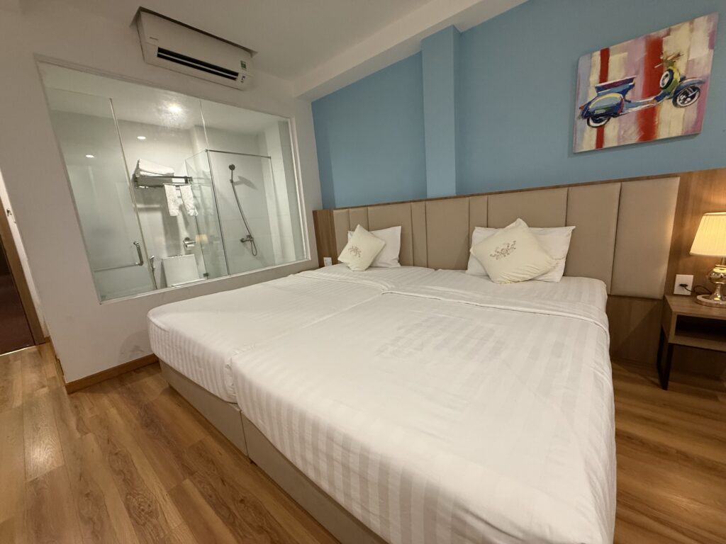 Номера в отеле разные по размеру: есть более просторные варианты, а есть совсем компактные, поэтому при бронировании рекомендую выбирать номер с окном — в таких комнатах заметно комфортнее находиться. В целом состояние номеров нормальное для своего сегмента, без излишеств, но всё необходимое присутствует.