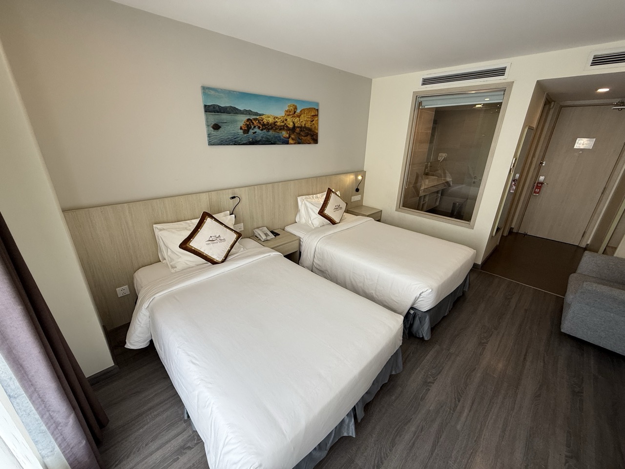 Stella Maris Nha Trang Hotel приятно удивил своим расположением — буквально несколько минут пешком до моря, рядом торговый центр, множество кафе и магазинов. Номера свежие, просторные, видно, что недавно сделан ремонт.
