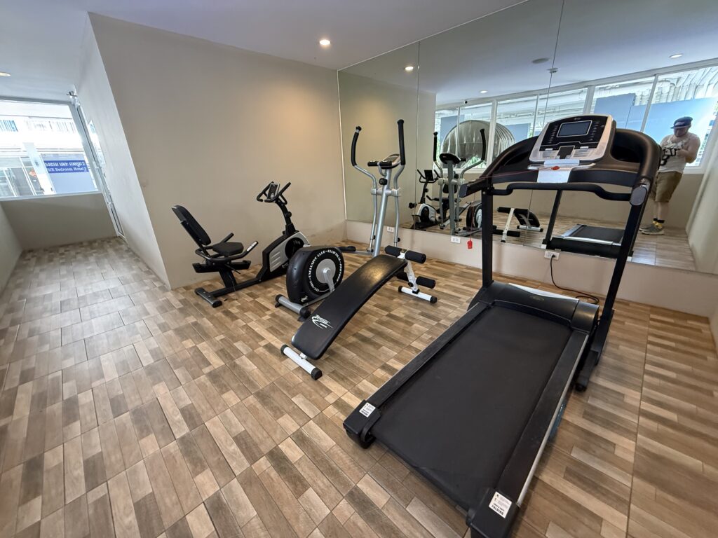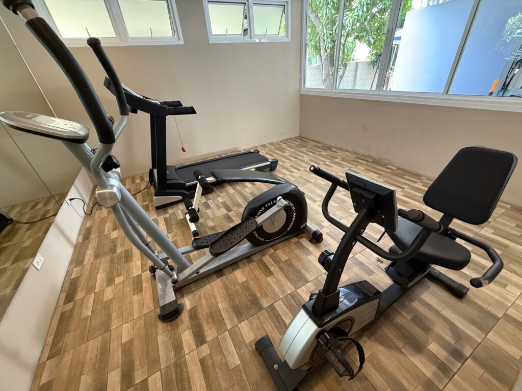 Номера подойдут для спокойной жизни: без туристической толпы, шумных улиц и вечеринок. Есть спортзал, что является плюсом для тех, кто живёт долго и хочет поддерживать форму без поездок в фитнес-клубы.